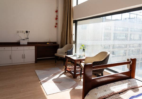 北京光大汇晨朝来老年公寓(汇晨来广营项目)居住空间的打造更是贴心至极,标准间50平米,套间100平米,户型方正通透。房间内电视、冰箱、空调、电话等生活设施一应俱全,专业养老用床、衣柜、写字台等家具量身定制,全方位的适老化设计贯穿每一个细节,最大程度保障长者的居住安全与便捷。
