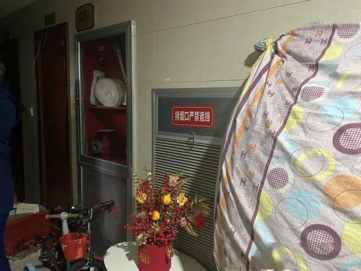 春节来临,居民一定要注意用电用火安全,尤其是安全使用大功率电器,楼道里不要堆杂物,常闭式防火门要随手关闭,杜绝安全隐患。