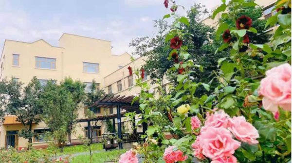 的建筑本身就是一道风景——18000平米占地面积中,7000平米为园林区域,绿植覆盖率超高,亭台楼阁、花草绿植相映成趣,漫步园内仿佛置身天然疗愈场。主体建筑采用“回”字形设计,既保障通透性与采光性,又暗含“团圆、圆满”的美好寓意,古典元素与现代设施完美融合,向长者传递“健康至上”的生活理念。